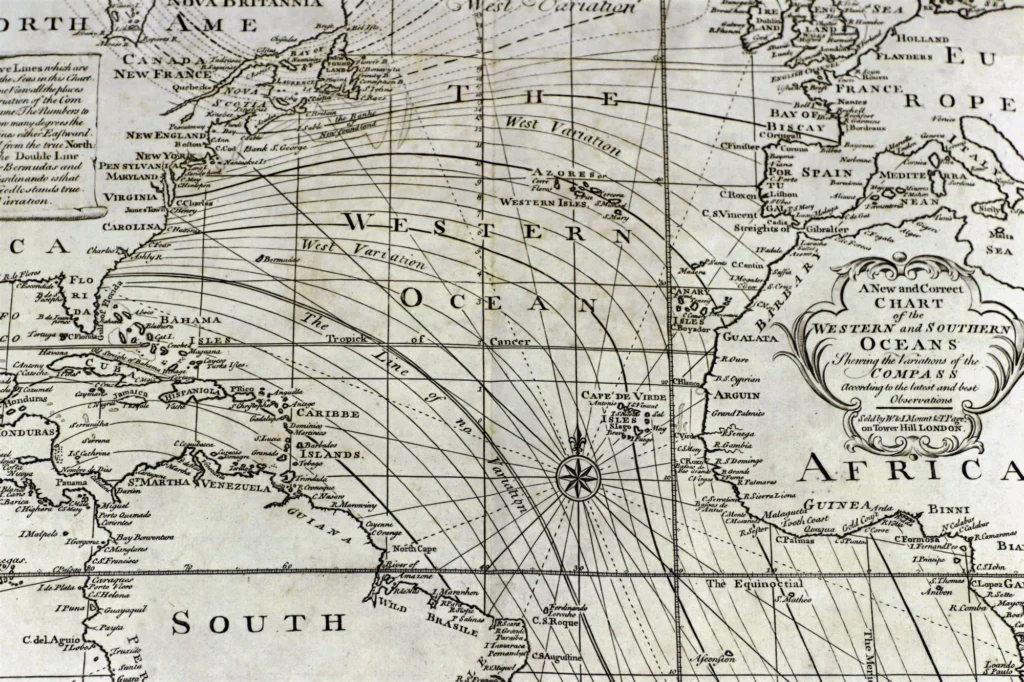 Global trade saw huge growth in this time, including the movement of basic stables such as sugars, teas, tobacco, textiles such as silks and cottons, and of course the movement of peoples, both willing and coerced. The family business, deeply rooted in navigational charts, also ended up publishing both accounts of the Longitude debate, which in the 1760s was the most sought-after prize for all sea-faring nations. Up until then, navigation could be accurate with latitude based on the sun, but could be several degrees out with longitude, meaning wasted journeys, lost ships running out of food and water, and ship wrecks as a result of human error. With the chronometer being invented by the carpenter John Harrison, the days of guesswork were over, as telling the time in two different places guaranteed an accuracy of navigation which up until then had been a distant dream.
