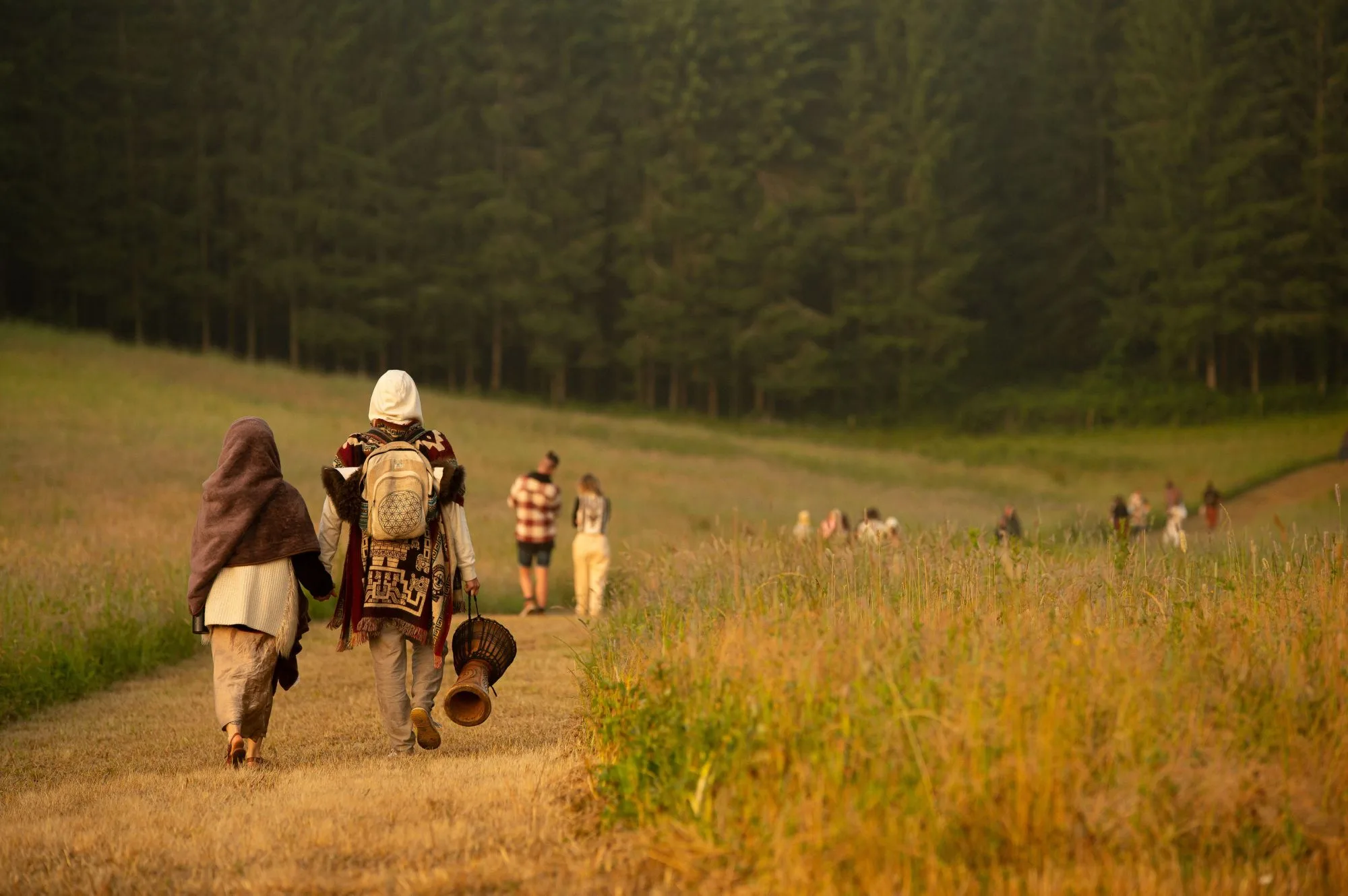 Guided by Chris Park, initiate of the Order of Bards, Ovates and Druids, the Sunrise Ceremony connects us deeply to the flora, fauna & natural world around us. It begins in the early hours of Saturday morning with a procession from the Sacred Glade to a tree-lined hilltop and culminates in greeting the rising sun over the valley, bringing fresh light & shifting new energies.