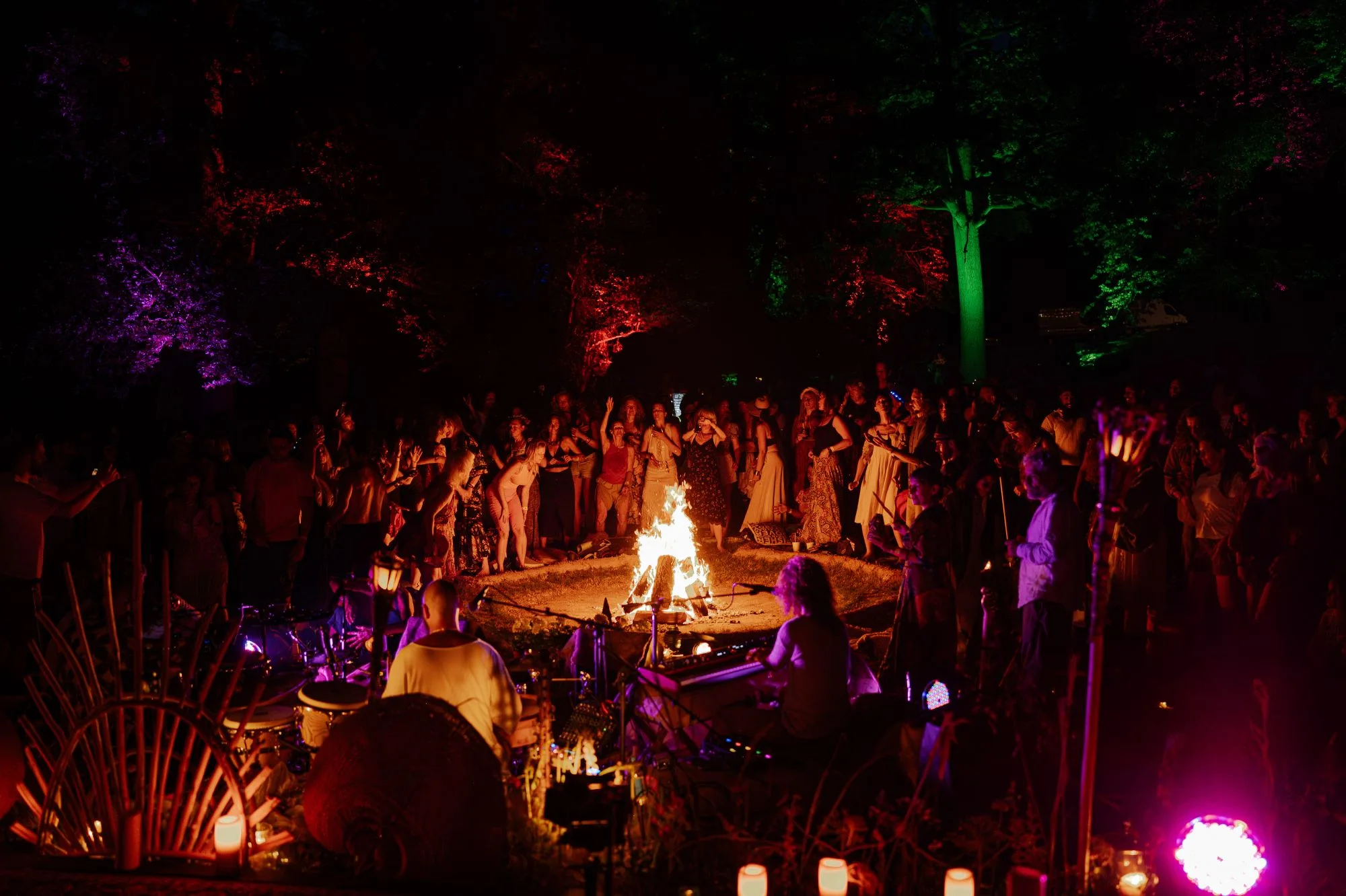 The Fireside Sessions spark the Solstice celebration’s shift from day into night & offer a magical and powerful experience around the fire and under the stars in Wasing’s Sacred Glade. Fire serves as a central and focal element, infusing our gatherings with prayer and ceremony and anchoring the energy we generate to offer back to the land.