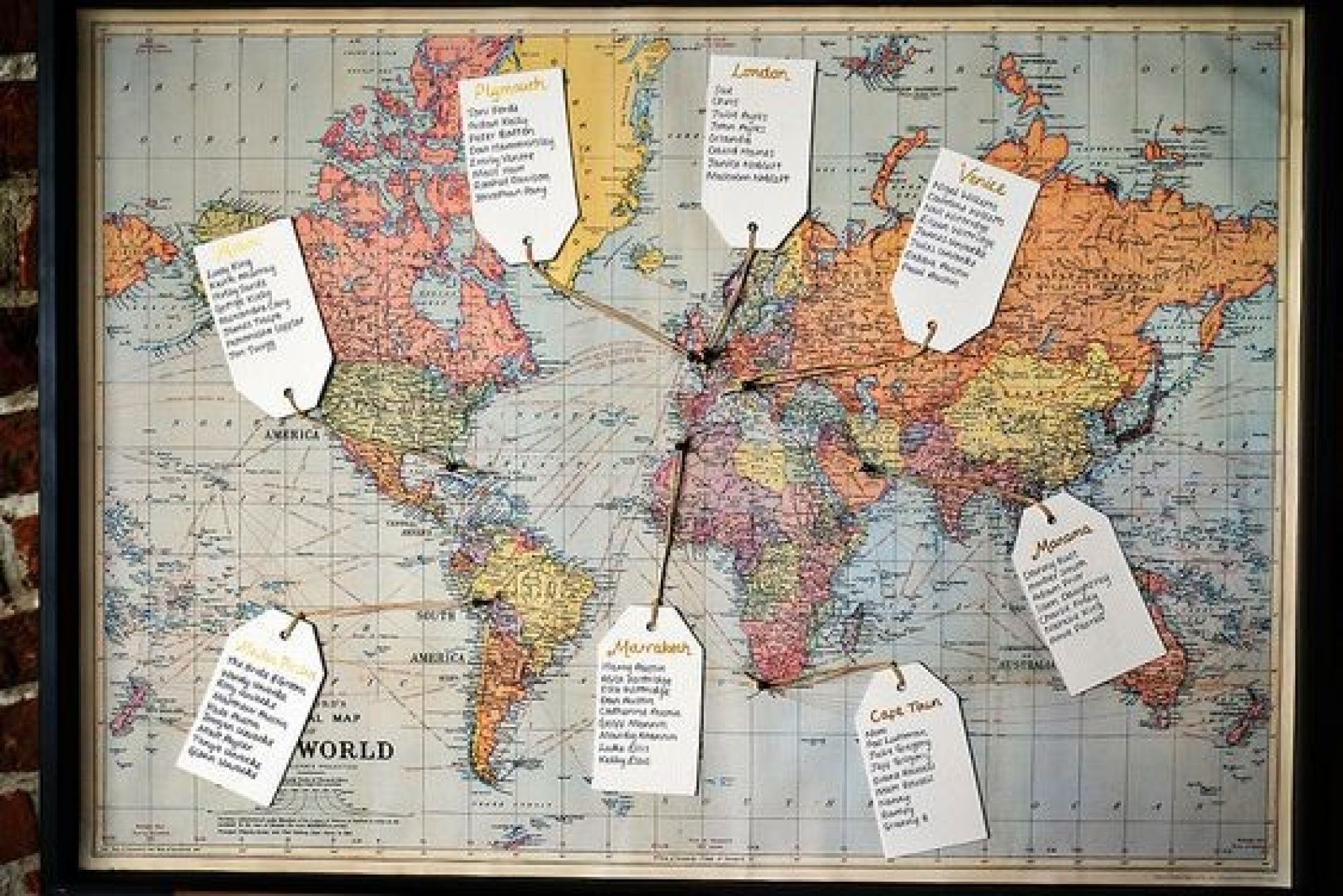 Use your first trips as a couple, your travel bucket list or even your honeymoon destination (top table idea?) to create a fun and bespoke board. For the name lists you can use luggage labels or even boarding passes. This doubles up as a fun way to name your tables instead of the traditional numbering.