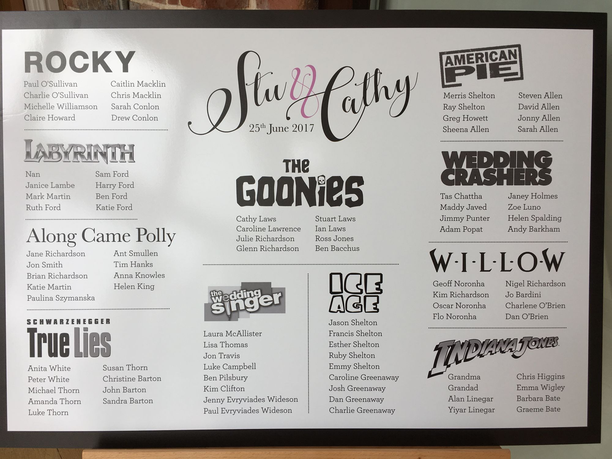 The best sure fire way to ensure that your table plan is completely unique to you, is to think of your shared interests and hobbies and theme it around this. Festival lover? Recreate a festival line-up. Book worm? Create some book shelves which your guest names on your favourite titles. Film Lover? Pilot? The options are endless. The best thing about this option is that you've then automatically got your table names too...