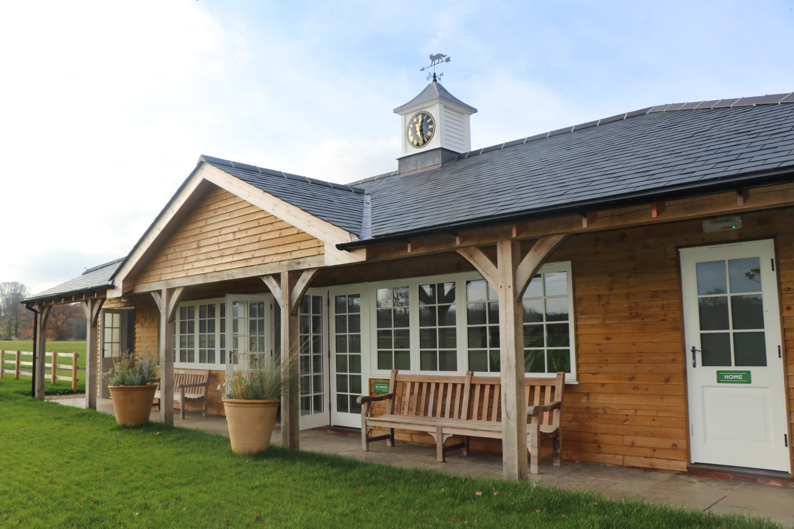 The purpose-built Pavilion looks over the stunning parkland and very pretty cricket pitch at Wasing.