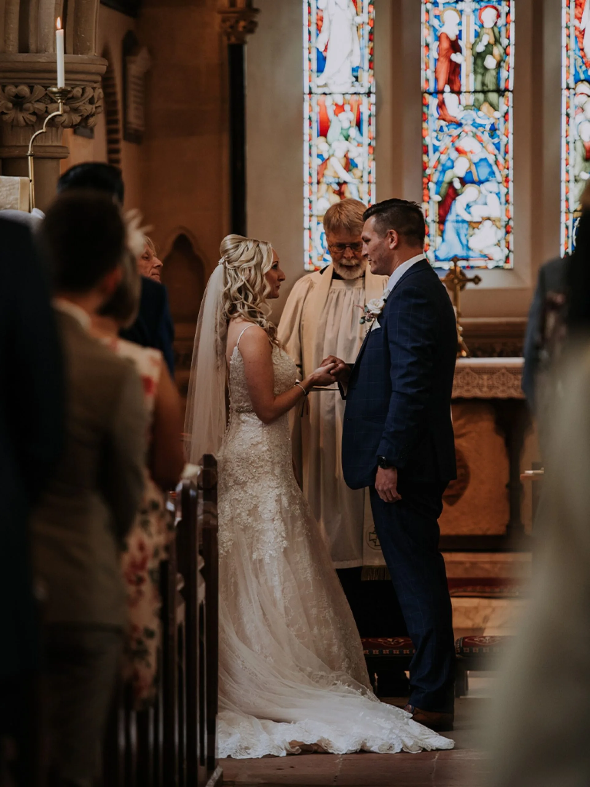 “During the service, singers sang ‘Higher Love’ and one of our groomsmen, a professional opera singer, performed ‘Red Red Rose’. We then had a wonderful pianist to entertain during our drinks reception and wedding breakfast.” – Mickayla
