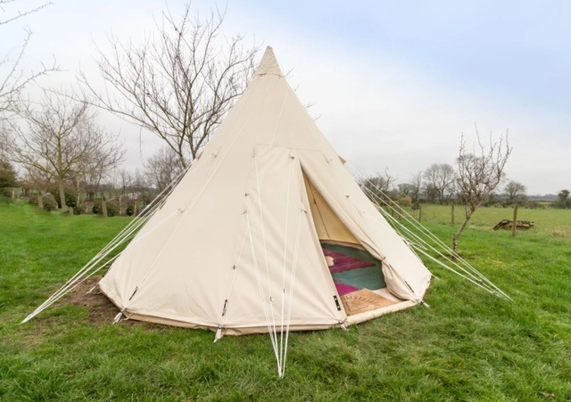 Please note that bell tents do not include power, wifi, heating, towels or shower facilities. Animals, fires & loud noise are not permitted.