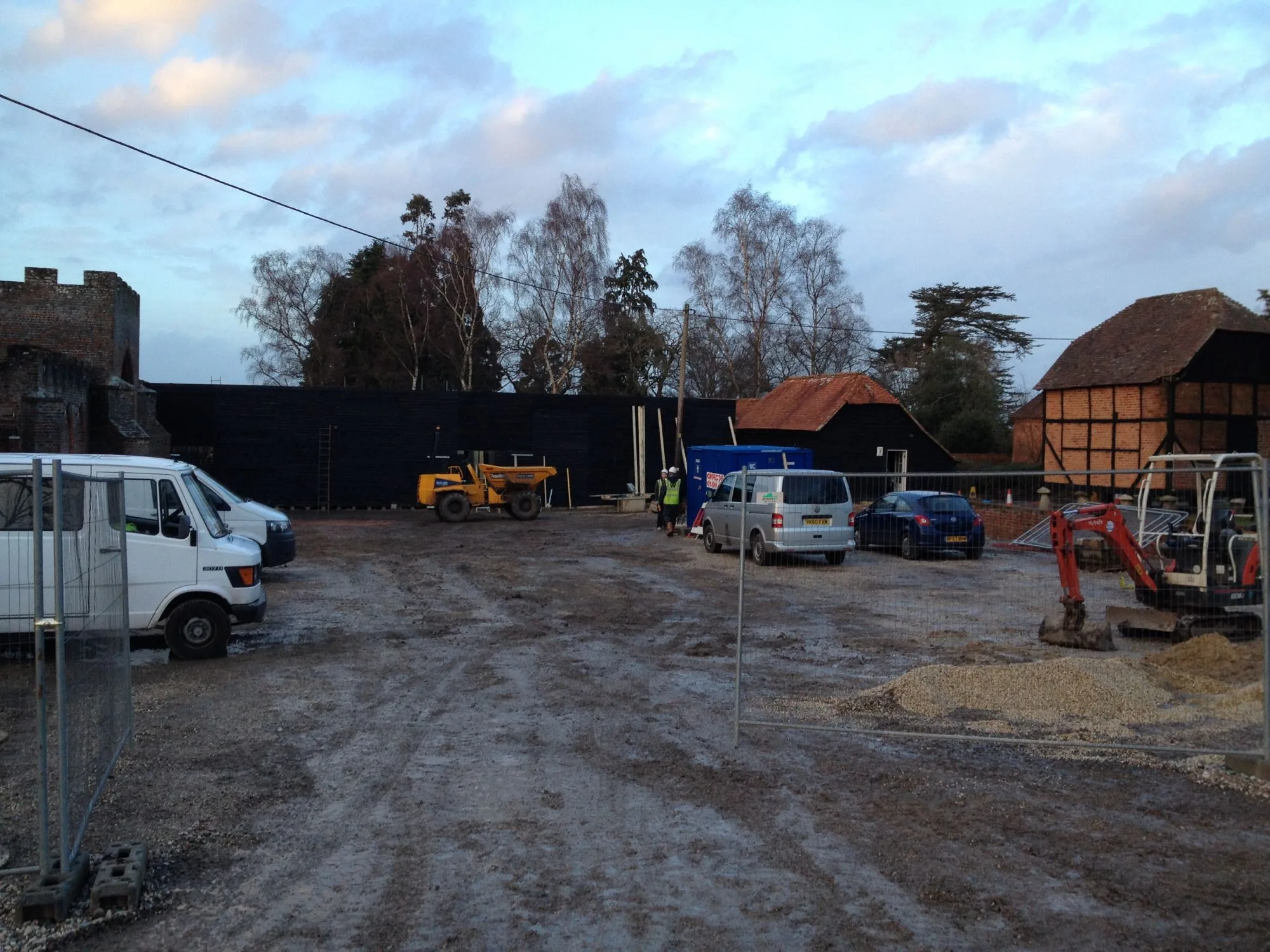 We needed to lay down a new car park for 80 spaces, dig the trenches for all the services, establish the building site for the new build with a whopping timber frame brought in from local contractor Vision Developments, and then cover up, lay gravel down, re-landscape the gardens with turf and plantings in time for the first wedding on the 14th February. And it was the peak of winter.