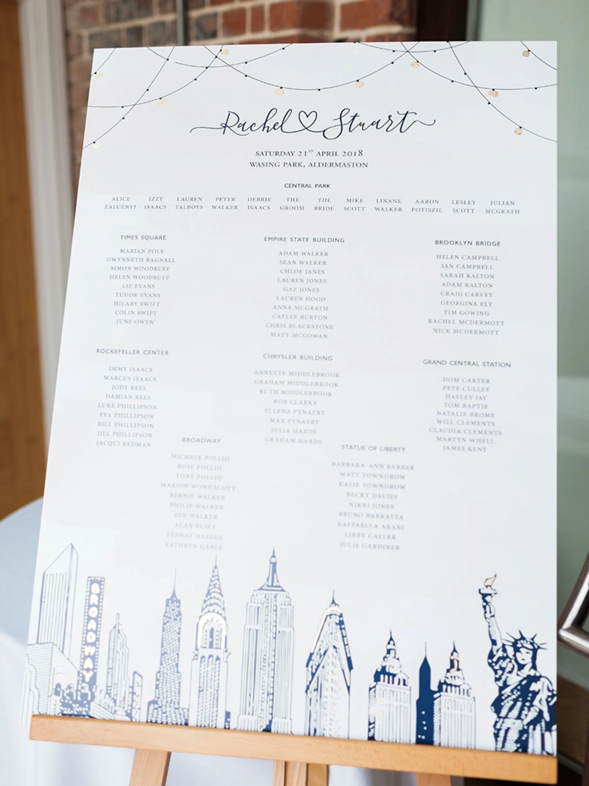 Setting an April wedding date, the happy couple wanted their look to be soft and romantic. After getting engaged in New York, they also wanted to incorporate the city in to the day so had a New York themed table plan.