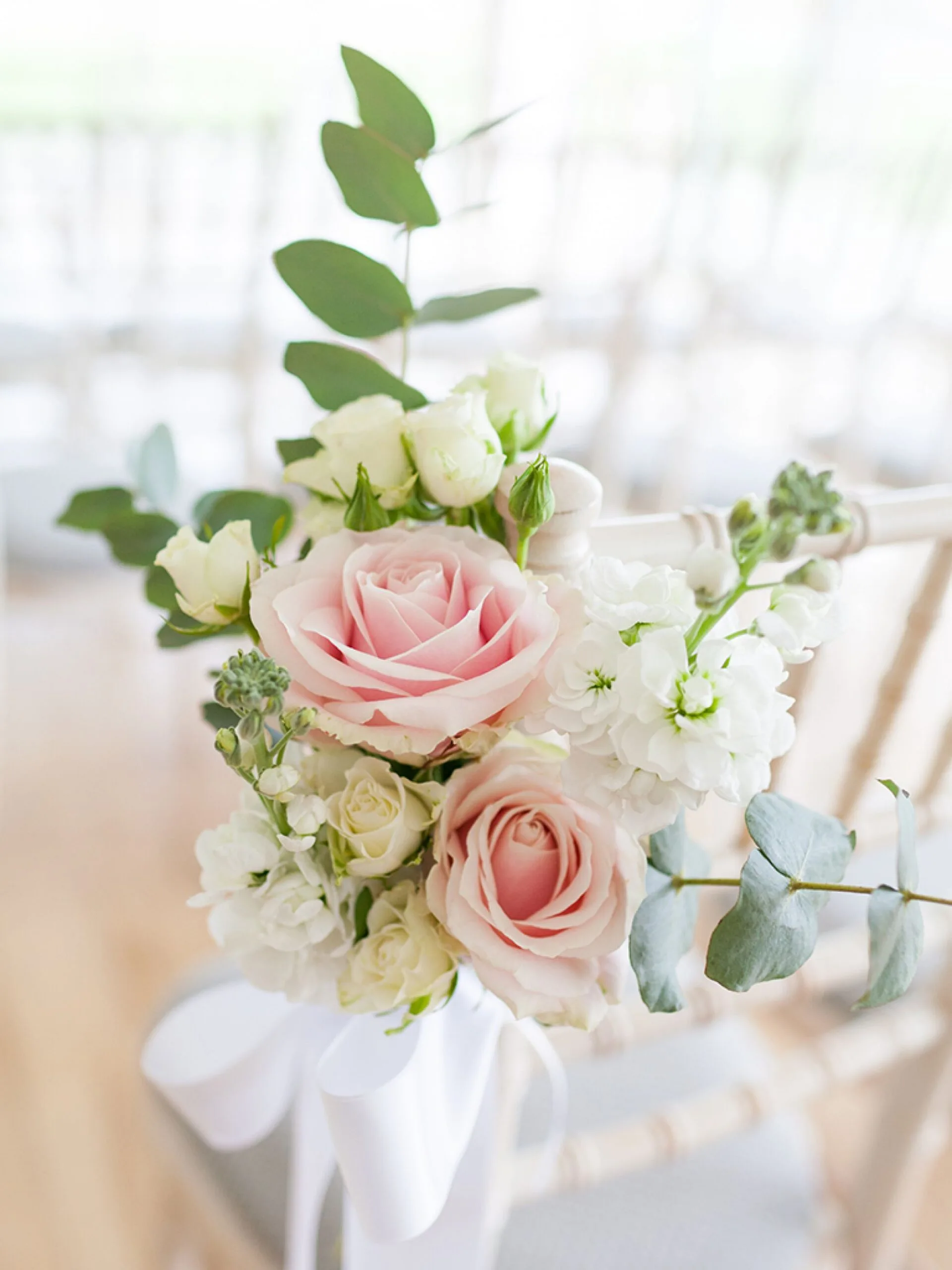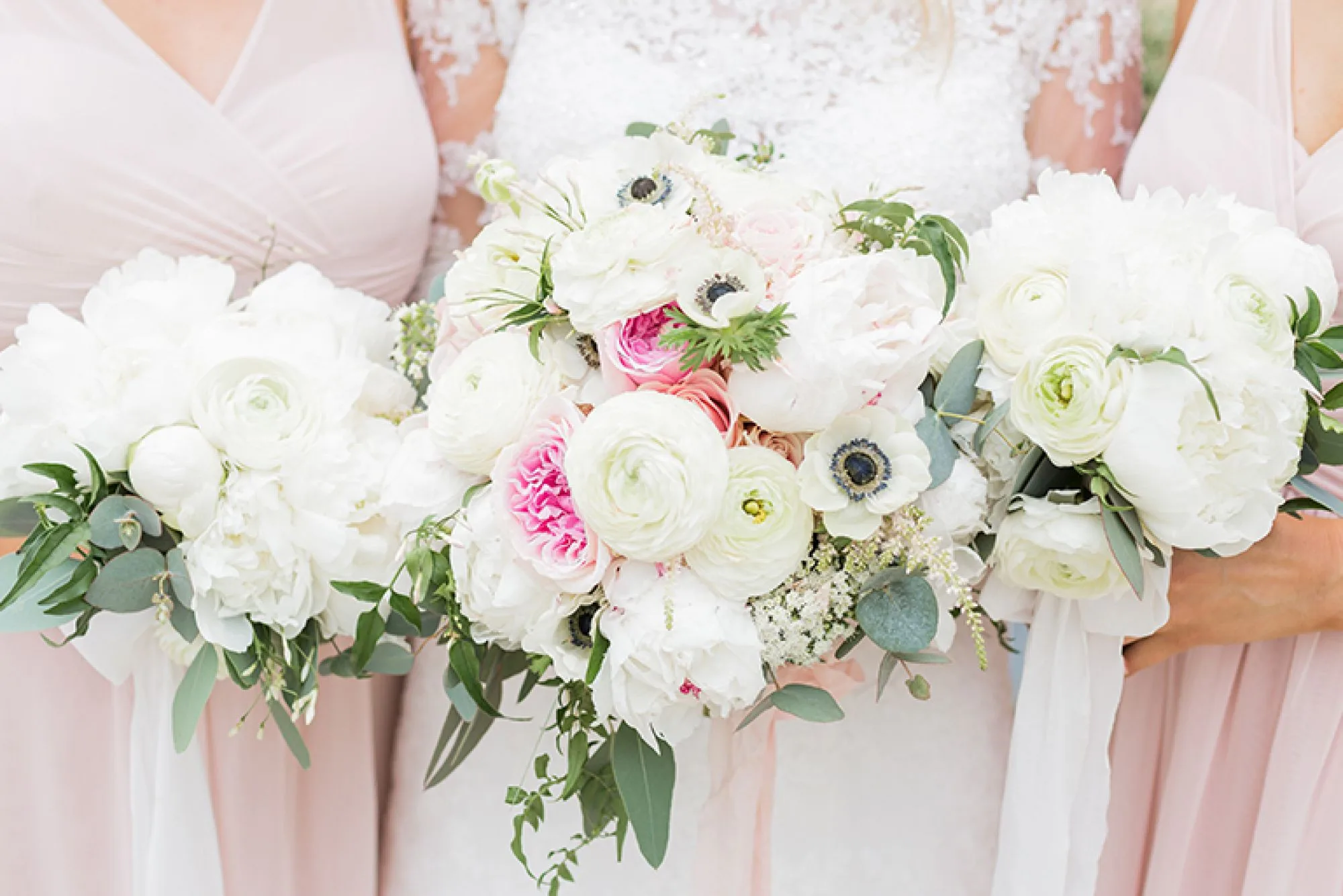 The beautiful blooms were arranged by florist Joanna Carter. Rachel’s bouquet featured pale pink Avalanche roses, blush pink peopies, ivory ranunculus, ivory anemones and pale pink astilbe. Meanwhile, the bridesmaids carried smaller posies featuring some of the same flowers and these stunning flowers were carried through to corsages, buttonholes and venue arrangements.