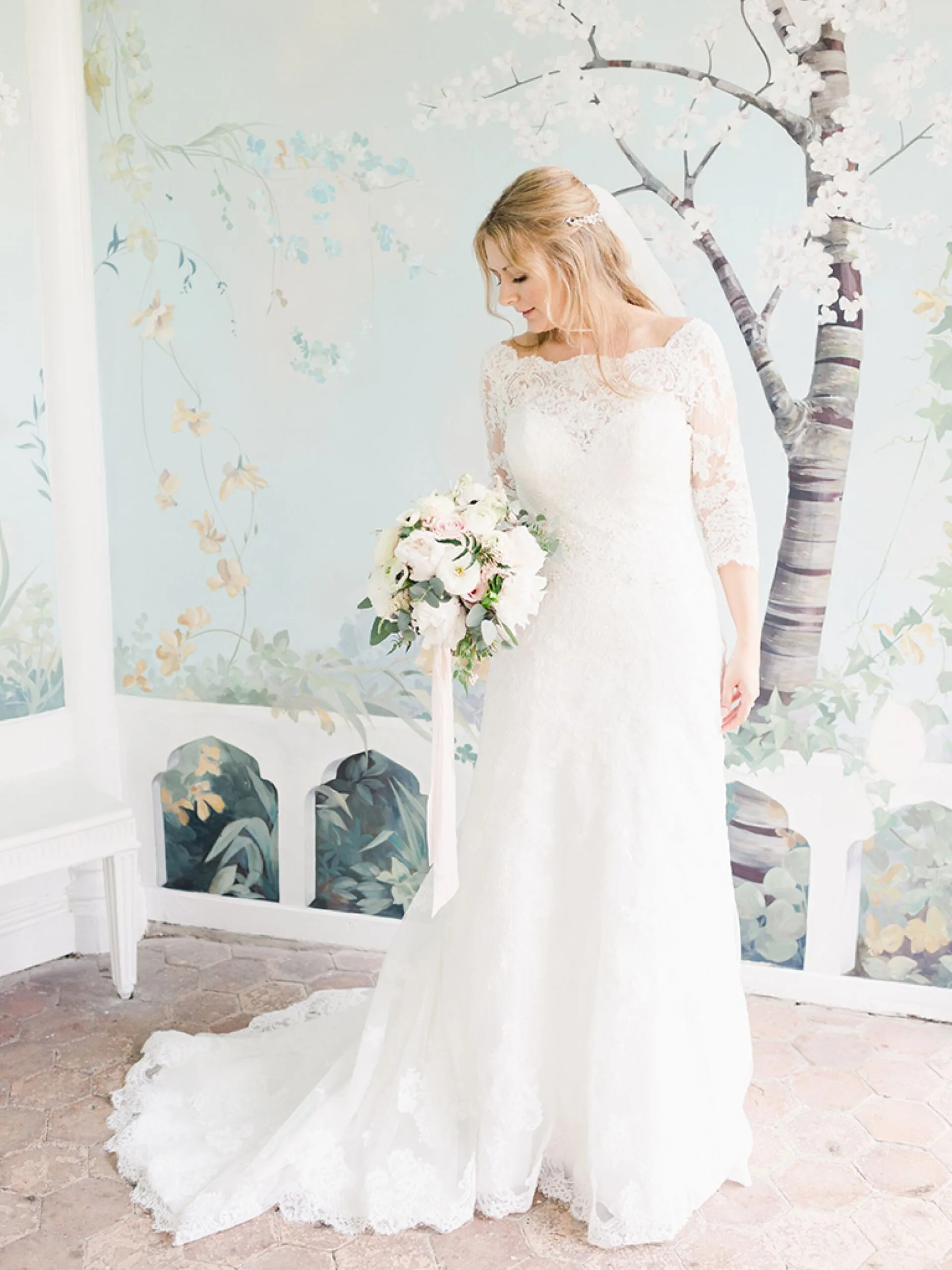 “I fell in love with it and the gorgeous bateau neckline. The back was my absolute favourite – it turned a fairly traditional dress in to a showstopper!” – Rachel.