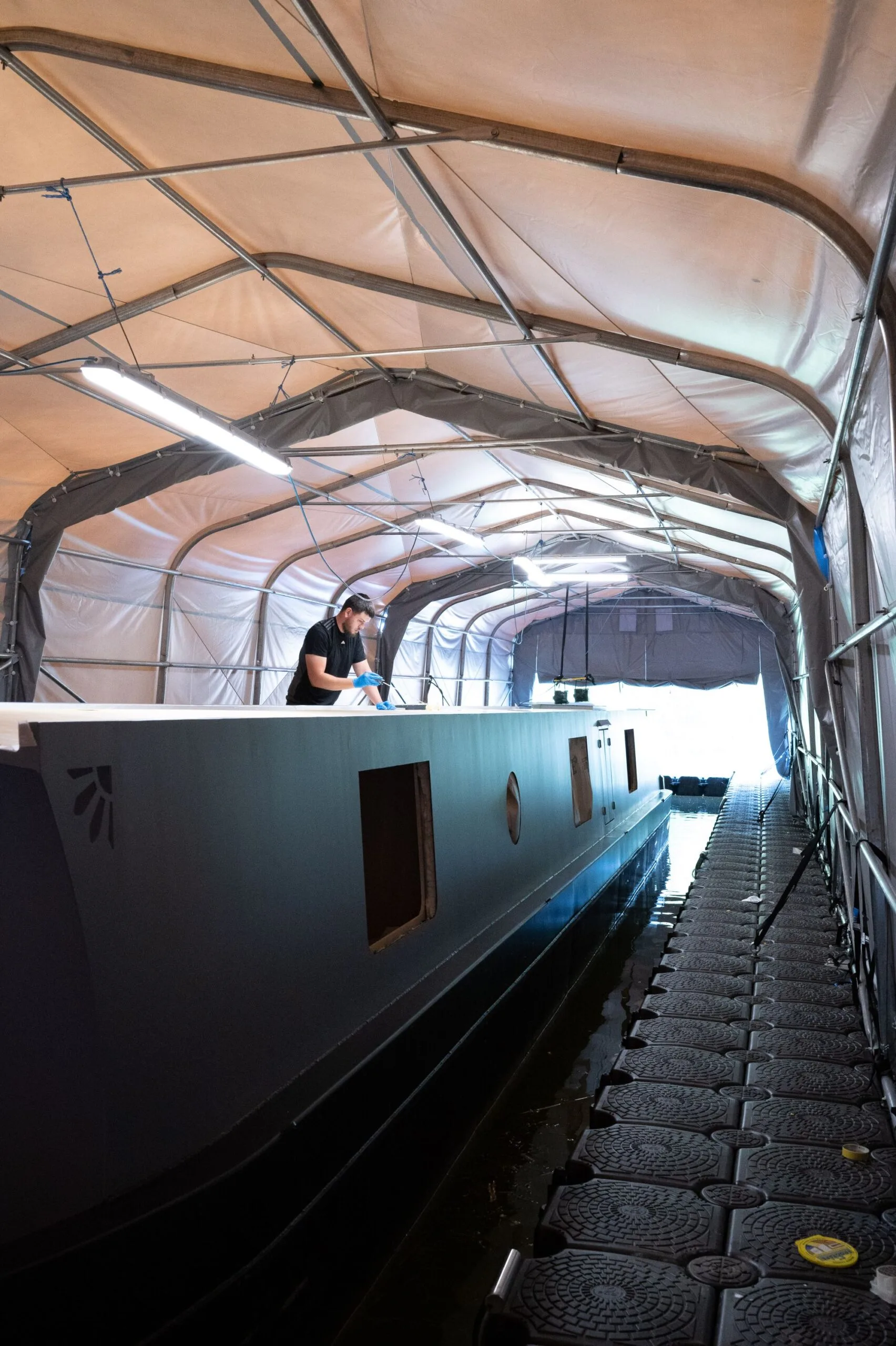 The customised floating dry dock has been welded and installed by a highly skilled local Berkshire-based team, using 32 tonnes of steel, 12 miles of weld and over 100 litres of paint for its assembly. In addition to the dry dock, a new paint tent has been installed, offering berth holders a convenient and quality service.