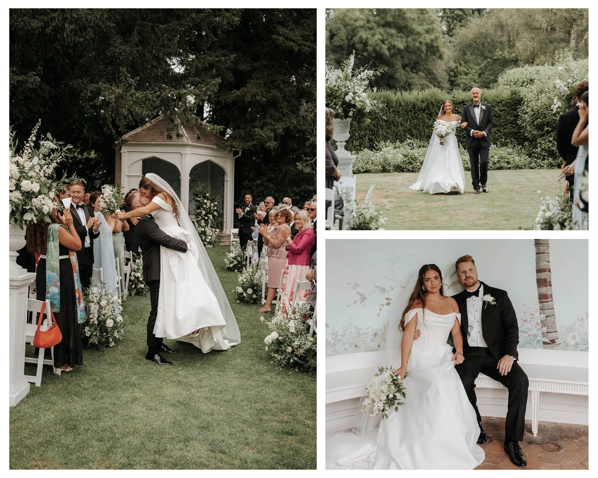 The ceremony unfolded in Wasing’s immaculately manicured gardens, framed by the Victorian Summerhouse, where the couple said “I do” beneath the blue skies and greenery. Nature did her part, but so did the styling… grounded in timeless details.