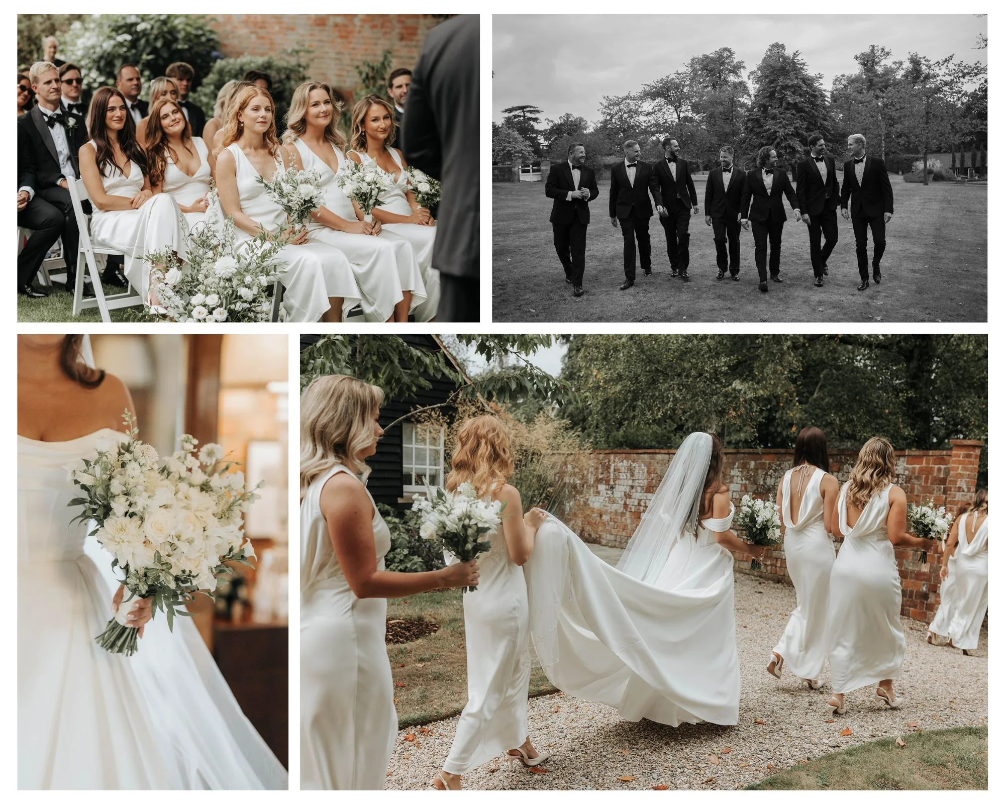 The groomsmen wore Black tie, but far from traditional. The bride’s inner circle redefined bridesmaid style in white silk dresses, exuding quiet glamour with a fashion-forward edge. Think minimalism meets old-world romance.