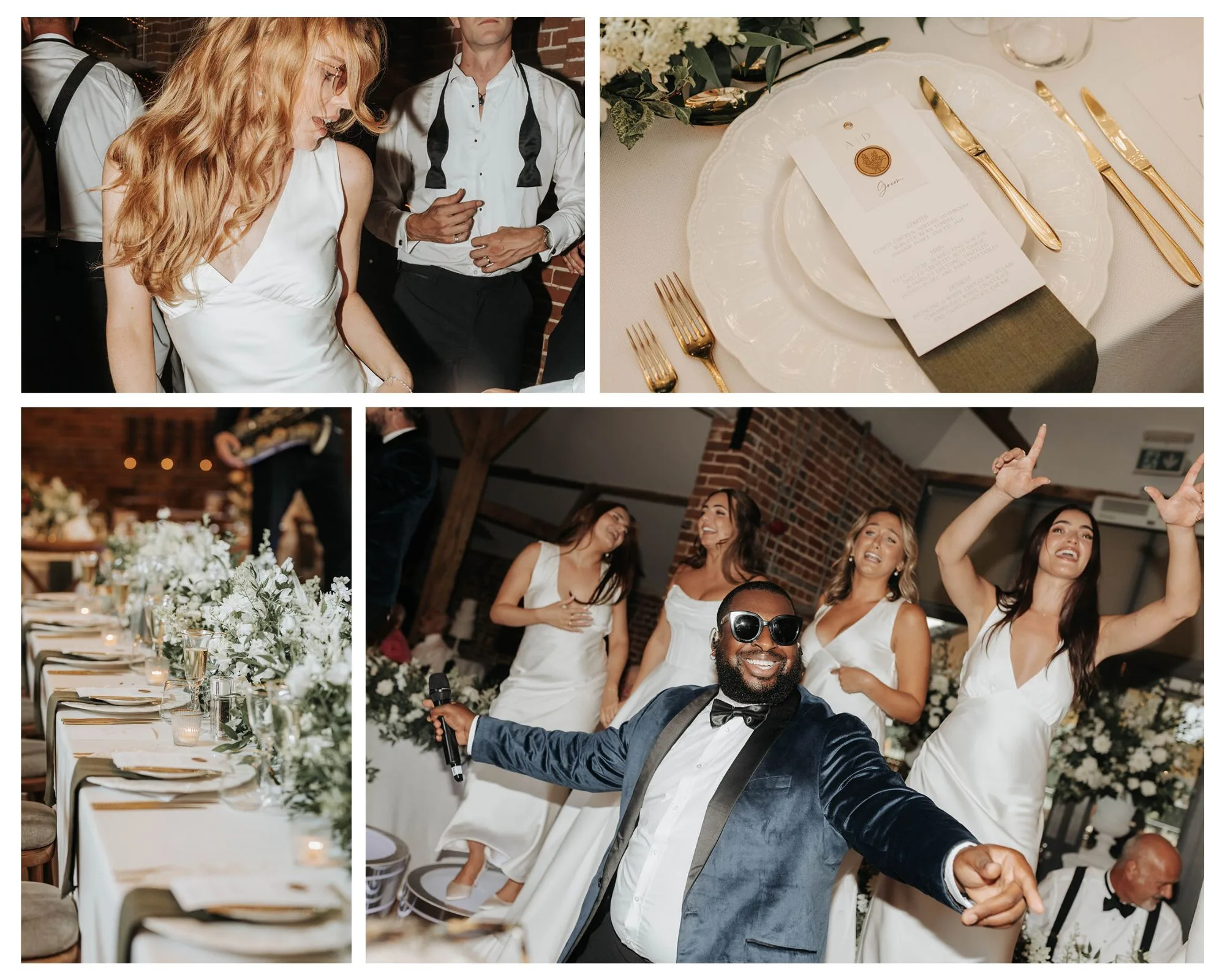 Guests were welcomed into the Castle Barn for a dinner that did more than just look good. Wasing’s farm has officially achieved organic status, and its ethos was brought to life in the ‘Nose to Tail’ menu, featuring produce straight from the estate, including standout Red Sussex beef from Wasing’s own herd. It was local, luxurious, and totally in step with today’s conscious approach to celebration.