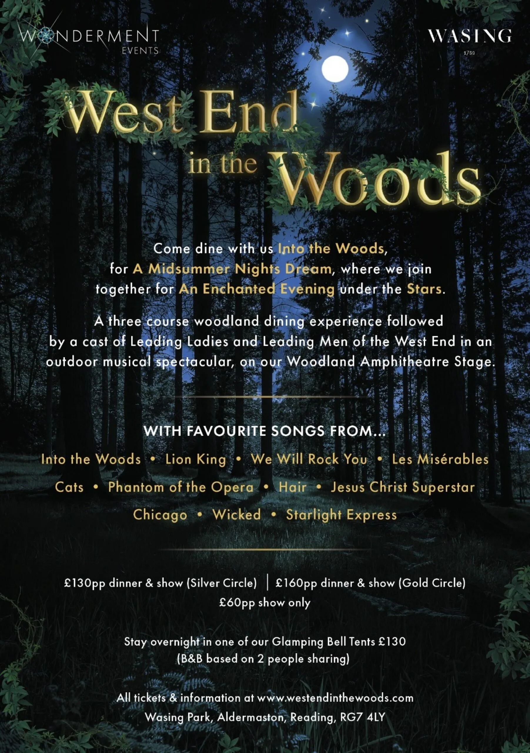Wonderment Group and Wasing are delighted to announce ‘West End in The Woods’, an outdoor West End concert and dining experience, will be held in the glorious woodland of Wasing, Berkshire on Friday 4th June and Saturday 5th June 2021.