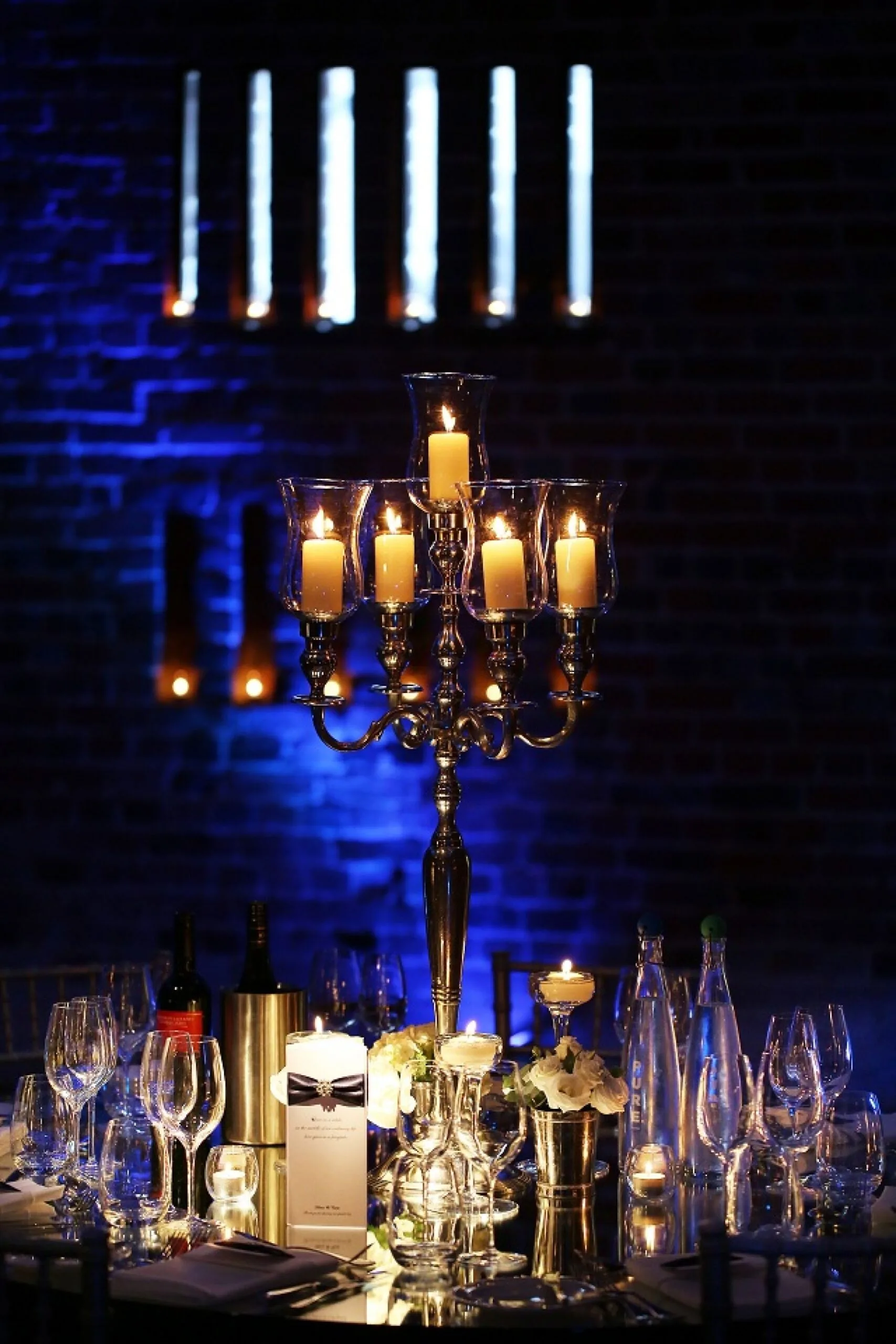 For more of a winter wonderland, decorate with icy blue lighting, fairy lights and candles, chandeliers and lots of crystals to reflect the light!