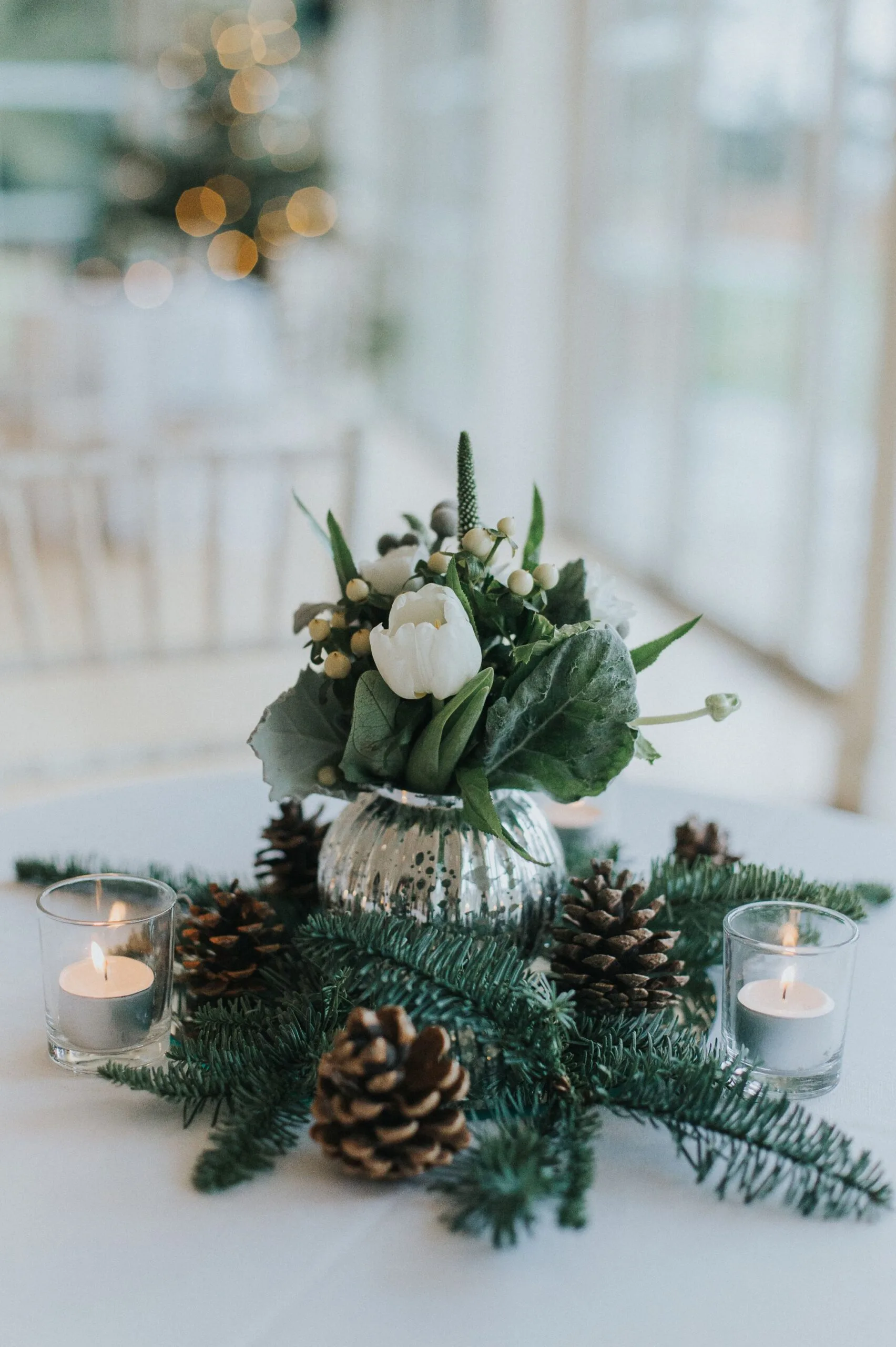 Incorporate the outdoors, nature and simplicity by creating a beautiful winter ‘outdoor’ wedding. Use pine cones for place name holders, wooden centre pieces and even add a few trees!