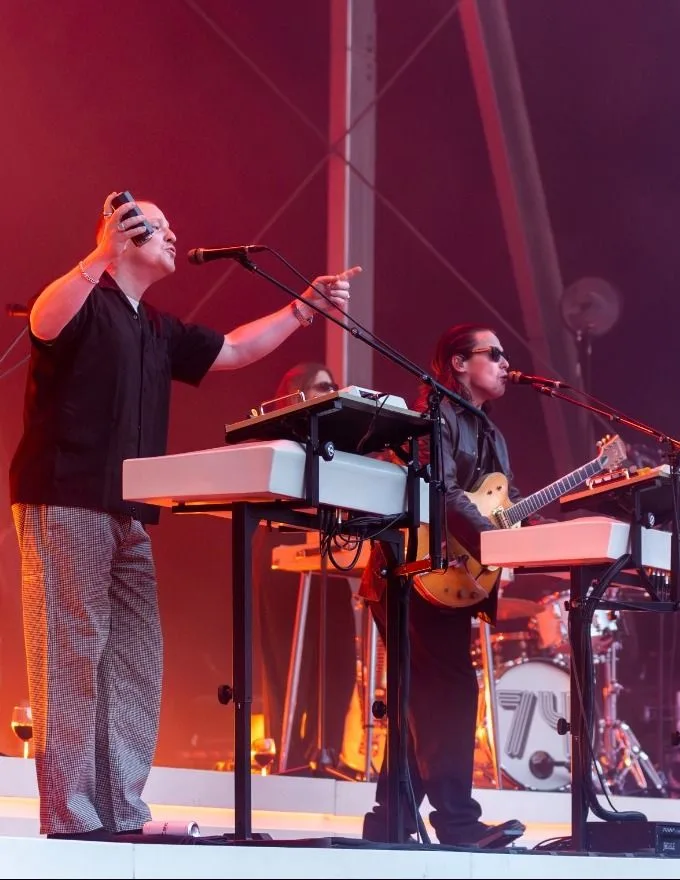 Jungle are one of the hottest names to emerge in British electronic music for the past decade. The duo comprising of Josh Lloyd-Watson and Tom McFarland were shortlisted for the 2014 Mercury Prize with their debut self-titled album. Their fourth album ‘Volcano’ was released to critical acclaim earlier this year alongside a feature-length film of the same name. The single ‘Back on 74’ became a huge hit, going viral with over a billion views across TikTok and Instagram inspired by its dynamic music video that millions are recreating. They played Glastonbury & The Mount on 27th June 2024.