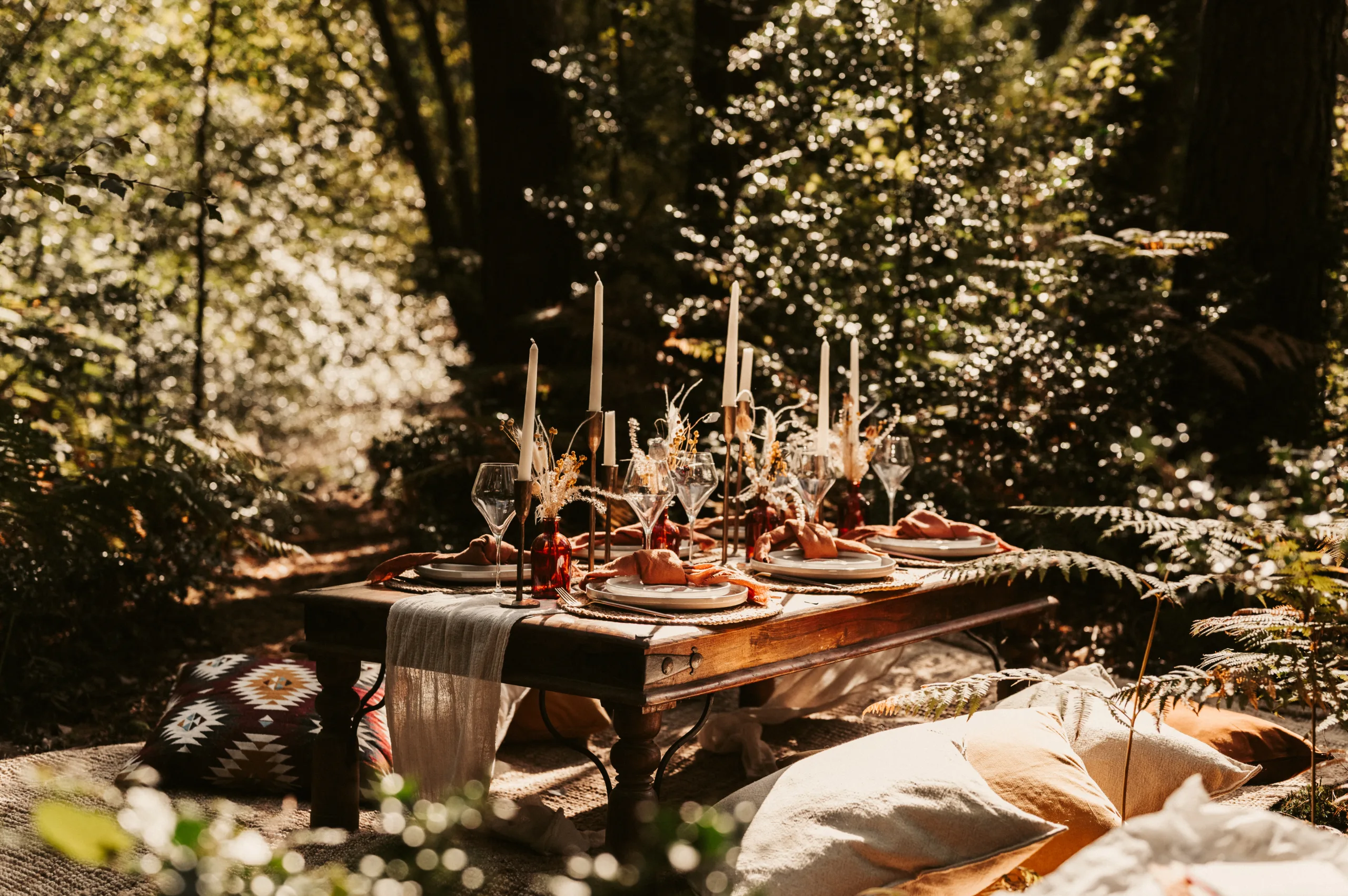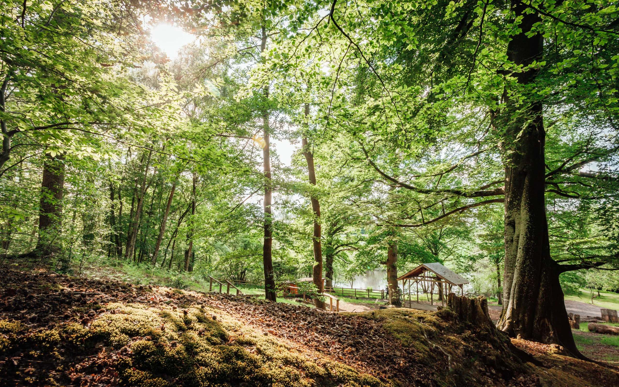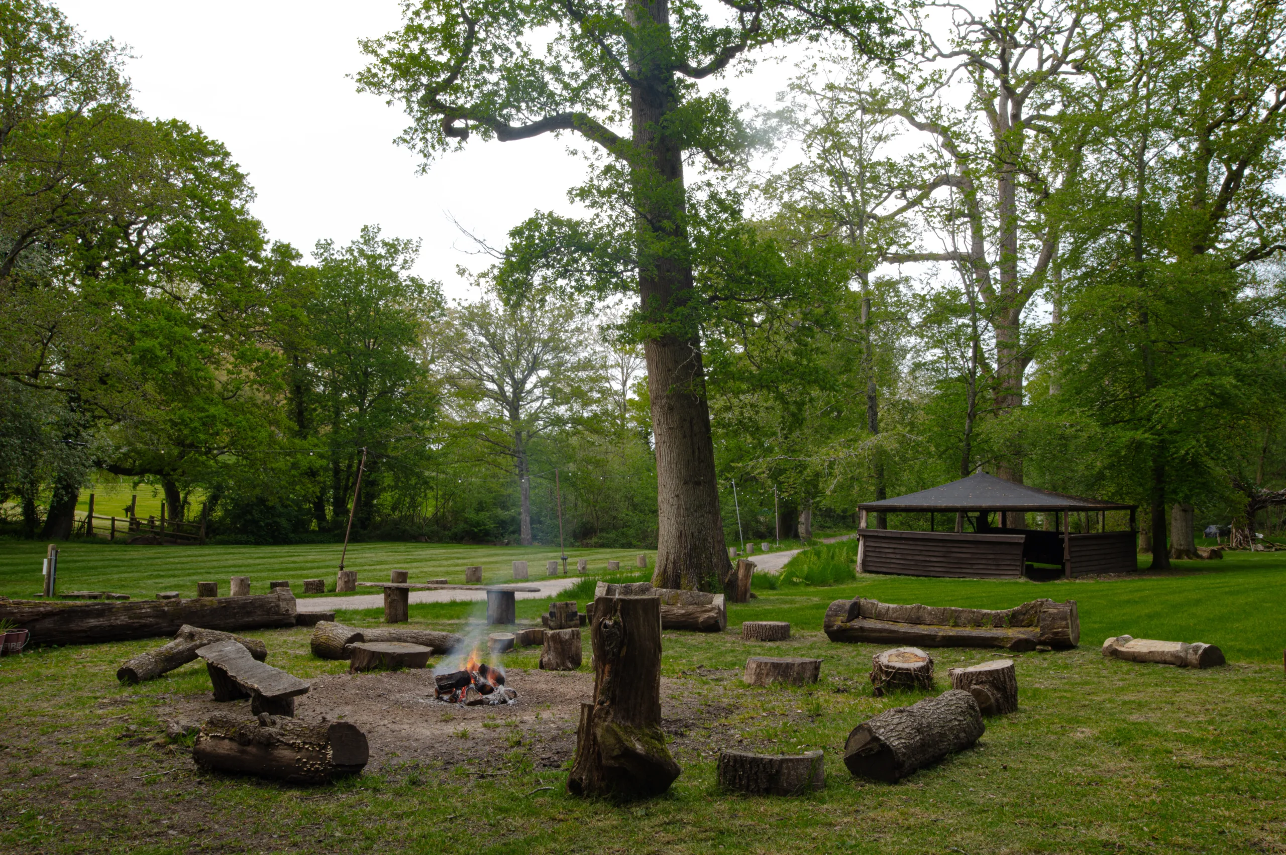 Set within our ancient treescape and nestled in the heart of nature, The Woodland makes for the ultimate, fully customisable outdoor wedding. The Woodland offers a tranquil setting where sunlight filters through the leaves, creating a magical atmosphere. From seating carved from wind-fallen trees and wooden bar structures, to our very own woodland kitchen.Whether you envision a rustic celebration or an intimate gathering under the stars, it is the perfect blend of romance and peacefulness.Invite up to 250 guests and build your dream day to be everything you can imagine.